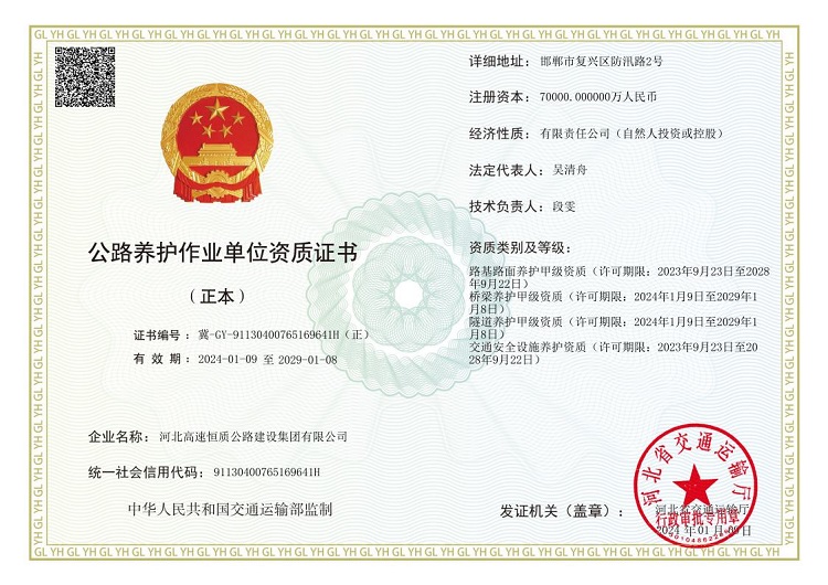 河北高速恒質(zhì)公路建設(shè)集團(tuán)有限公司始建于2004年,前身是邯鄲市恒質(zhì)公路建設(shè)集團(tuán)有限公司。2024年7月成為河北高速公路集團(tuán)有限公司二級(jí)子公司,現(xiàn)有職工500余人,下轄18家子公司13個(gè)分公司,參股公司3家 ,注冊(cè)資本7億元,是一家集公路工程施工、路用材料研發(fā)生產(chǎn)、試驗(yàn)檢測(cè)、瀝青貿(mào)易、公鐵物流于一體的多元化、綜合性單位,國(guó)家級(jí)高新技術(shù)企業(yè),河北省專(zhuān)精特新中小企業(yè),河北省首家瀝青拌合環(huán)保引領(lǐng)性企業(yè)。公司擁有公路工程總承包壹級(jí)、公路交通工程(公路安全設(shè)施)專(zhuān)業(yè)承包壹級(jí)、機(jī)電工程施工總承包貳級(jí)、電力工程施工總承包貳級(jí)、市政公用工程施工總承包貳級(jí)、建筑工...